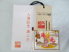 | 天気は良いのだが肝心の富士山は見えなかったのが残念。フロントで入湯記念湯ふだを販売していた。湯の花入りだ。(2014/7/22:温泉博士で利用) |